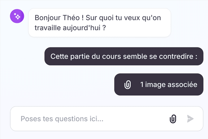 Posez-lui toutes vos questions sur le programme, les exercices ou les corriges. Il connait les cours et les annales de votre faculte aussi bien que vos professeurs.